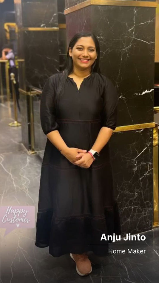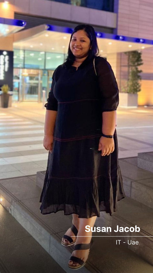 I loved the blackdress, came to india yesterday and tried it today as i got my hands on your parcel -perfect fit.