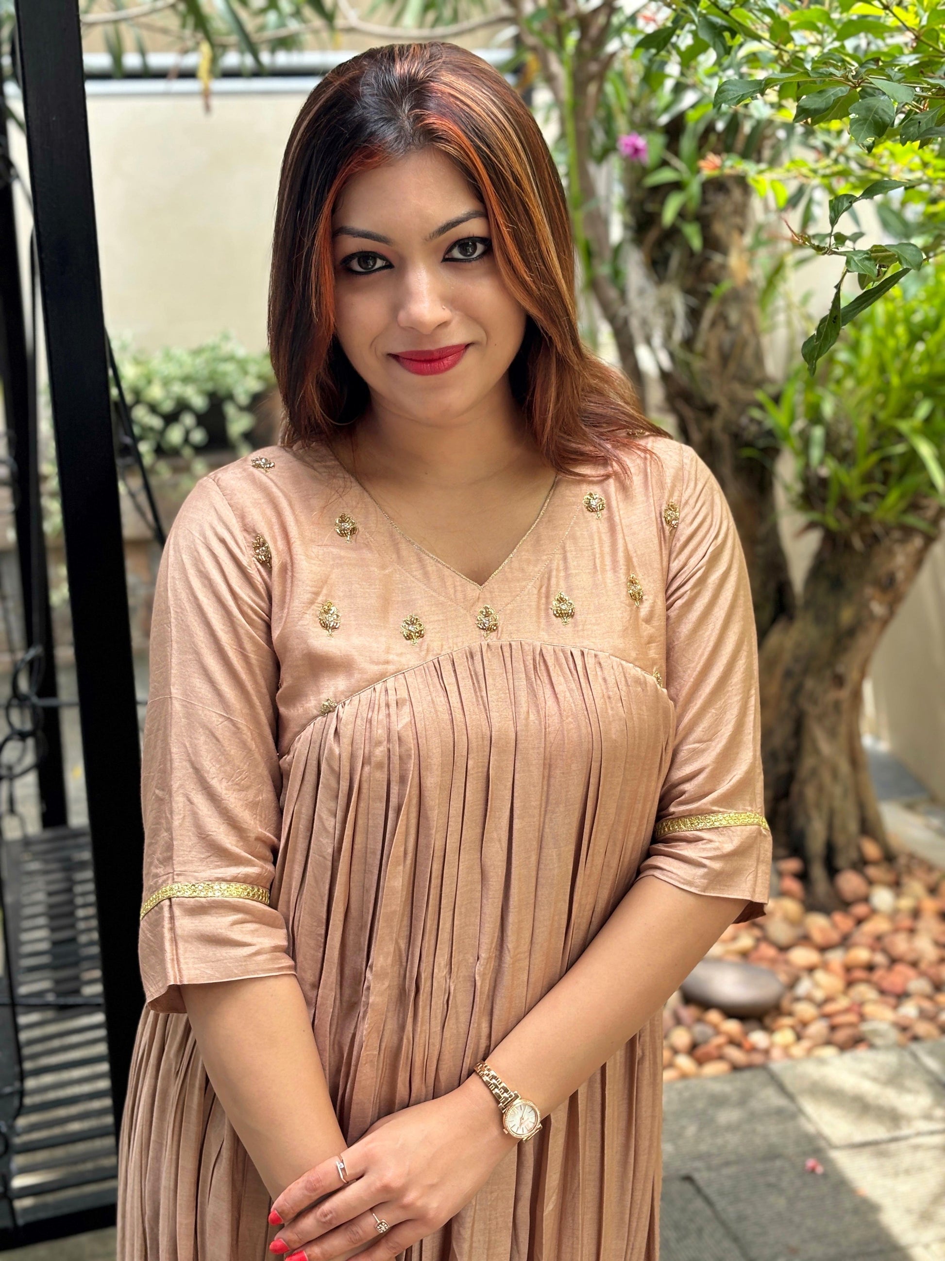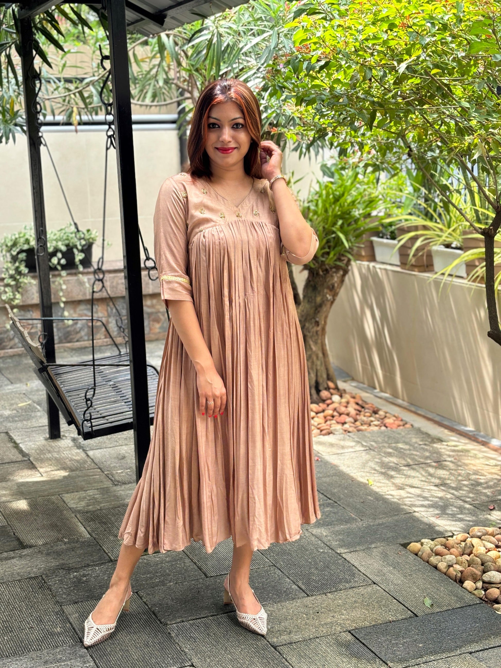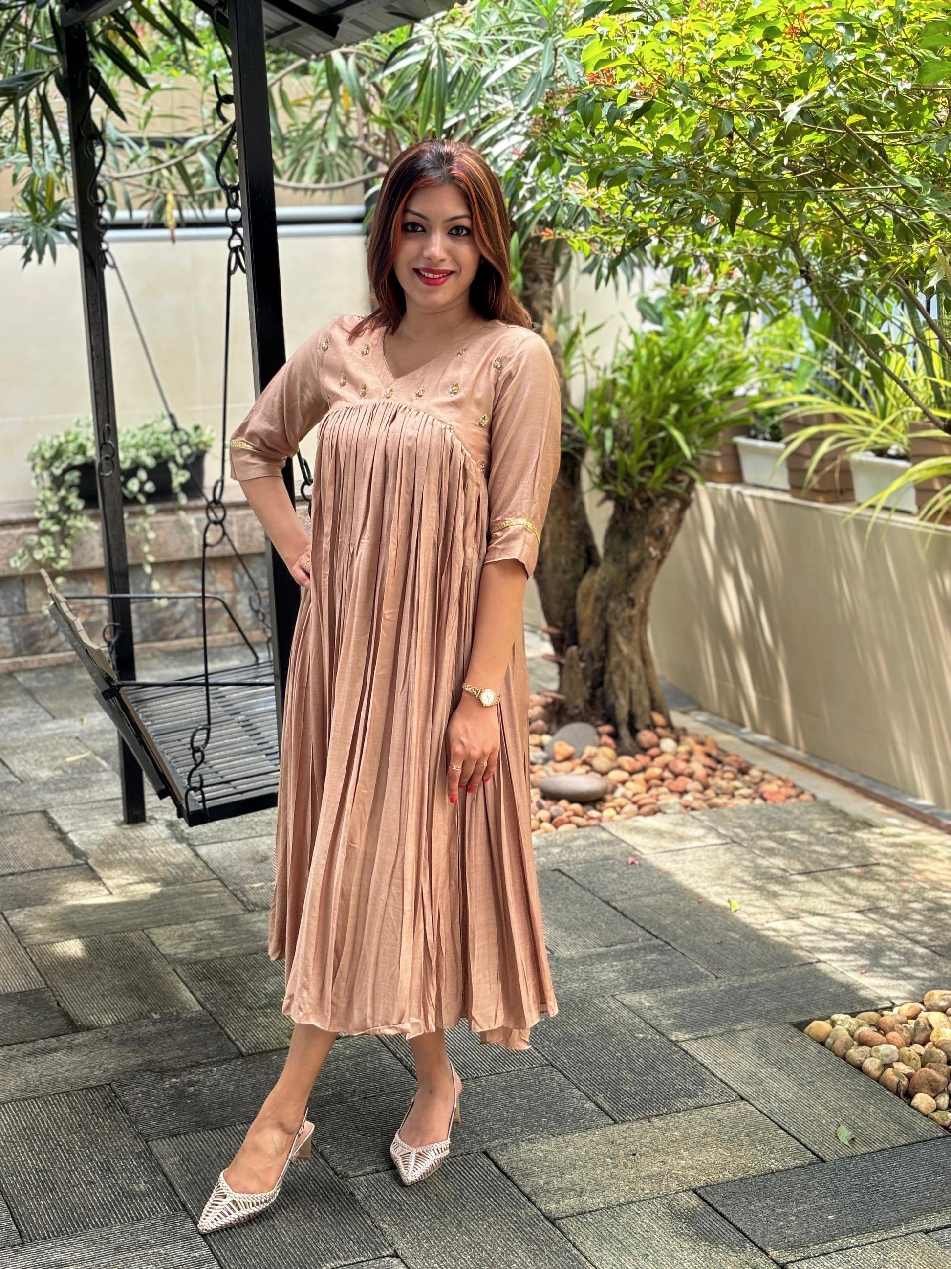 The beadwork and pleated design make this outfit truly unique. It’s not just another dress—it’s a statement piece. Can’t wait to shop more from this collection!"