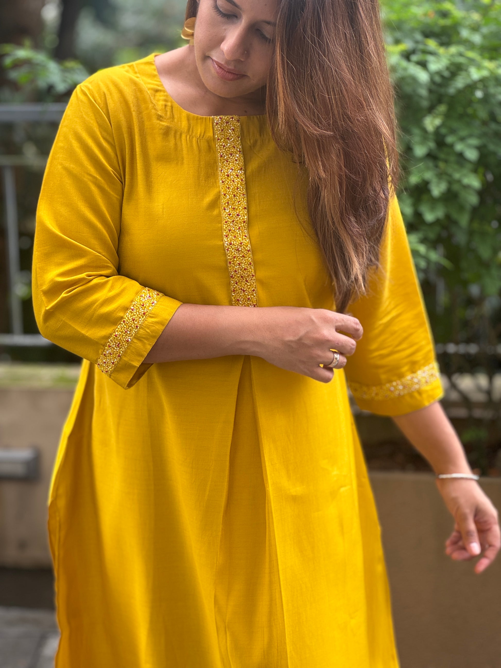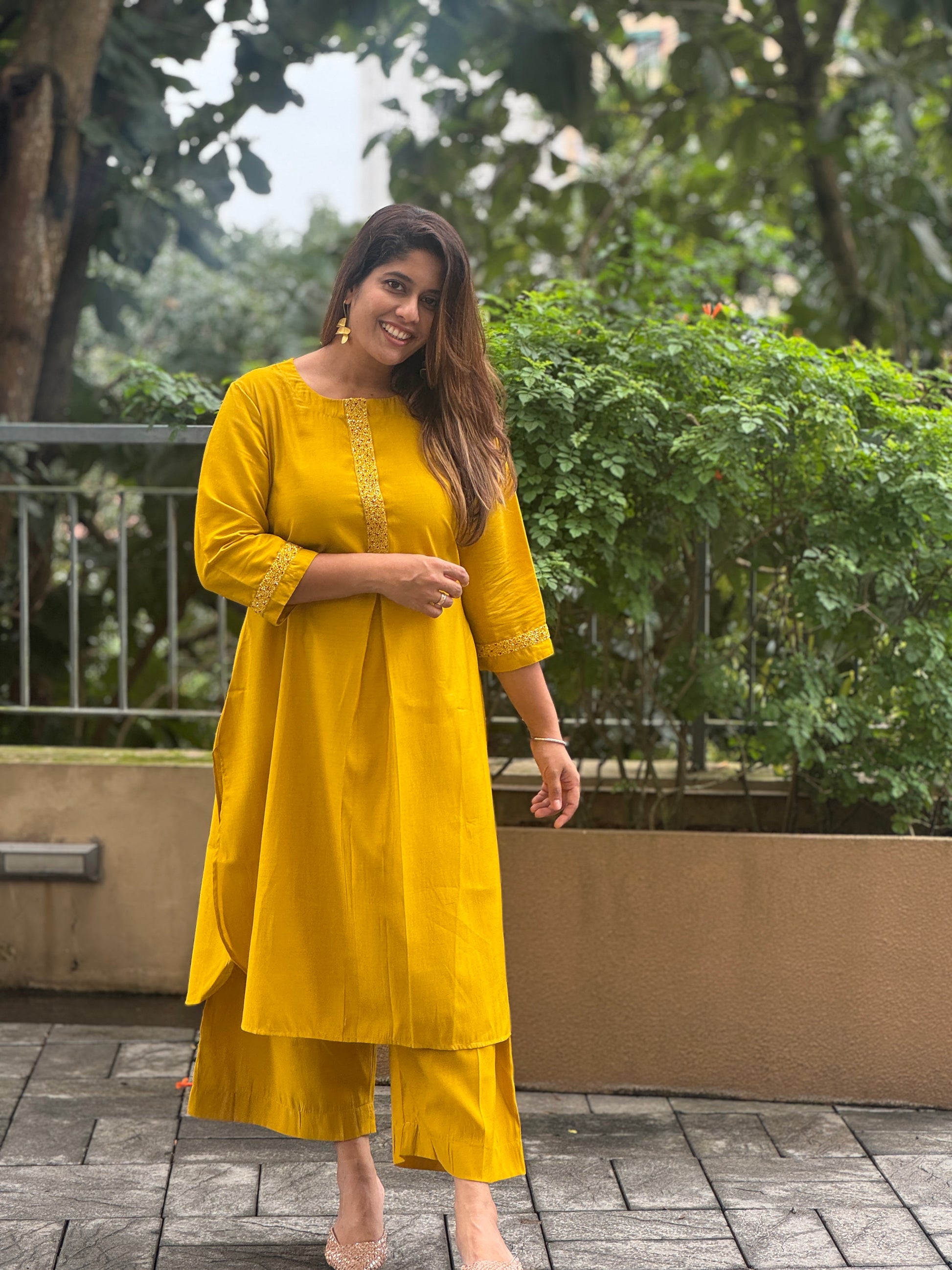 I absolutely love the mustard yellow co-ord set! he bead work is very classy . Love the fit and comfort .