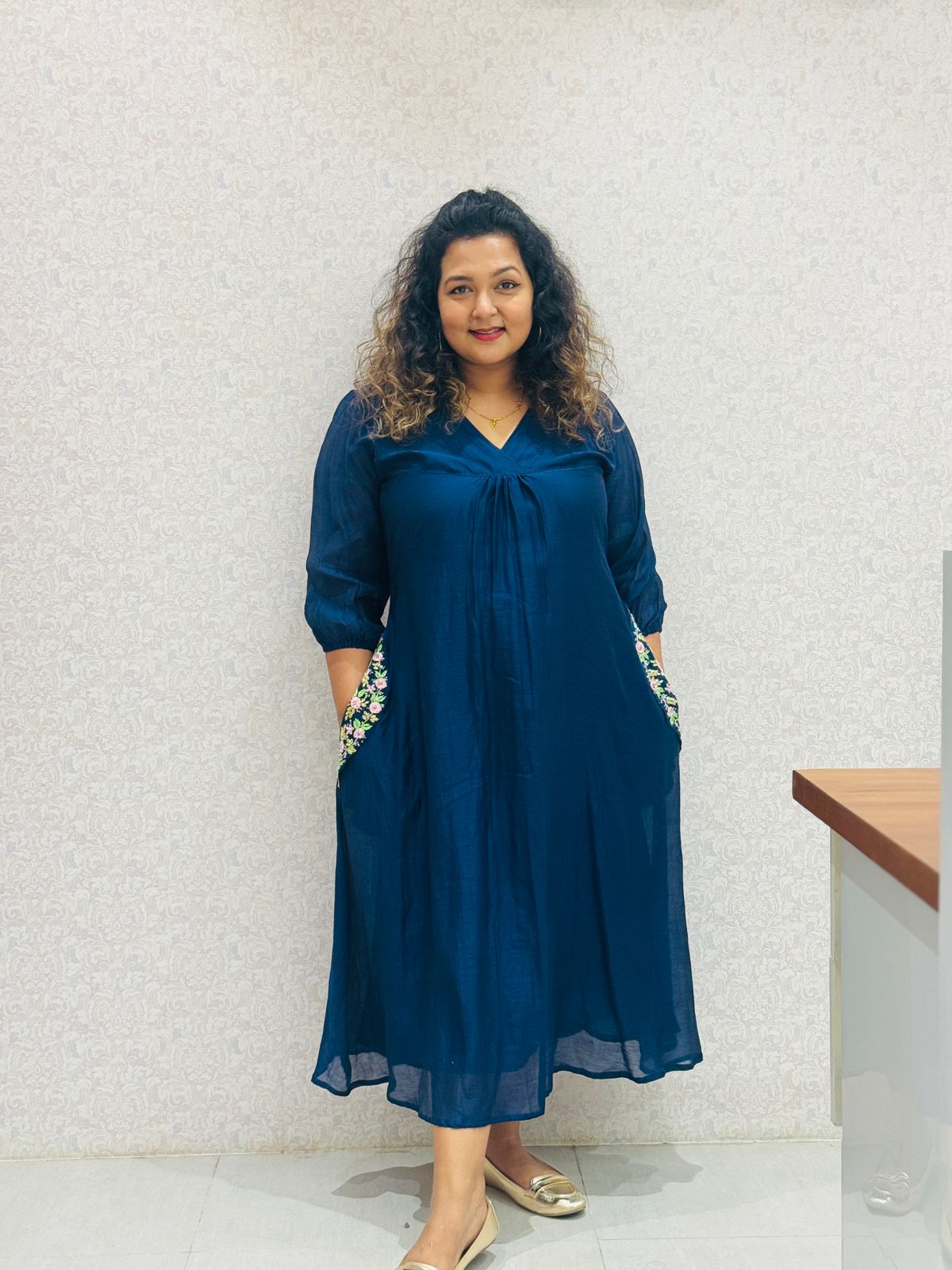 Exquisite craftsmanship meets stunning beauty in this breathtaking deep blue Chanderi silk dress!