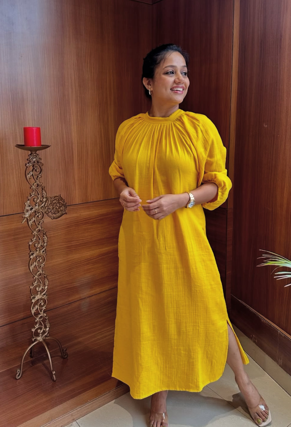 Add some fun to your wardrobe with this high neck crush cotton dress pure organic fabric , best part is it’s colour customisable . The relaxed anti-fit makes it a comfortable anytime wear essential.