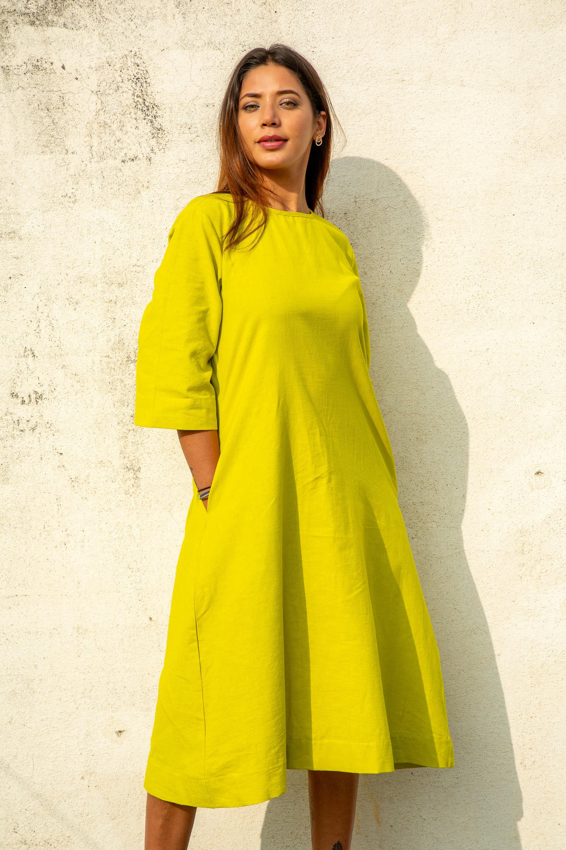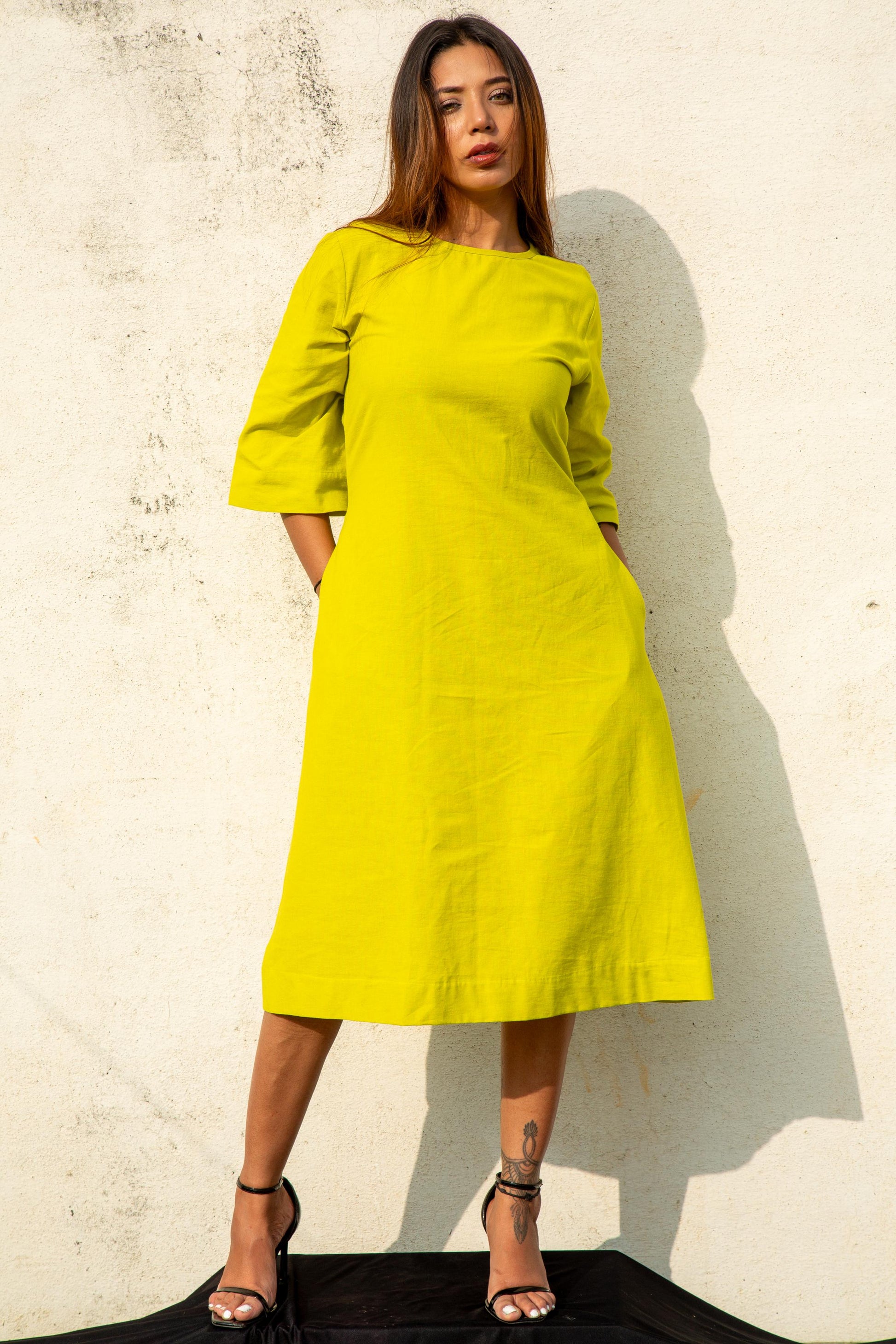 Lemon Green Linen Shift Dress - X25