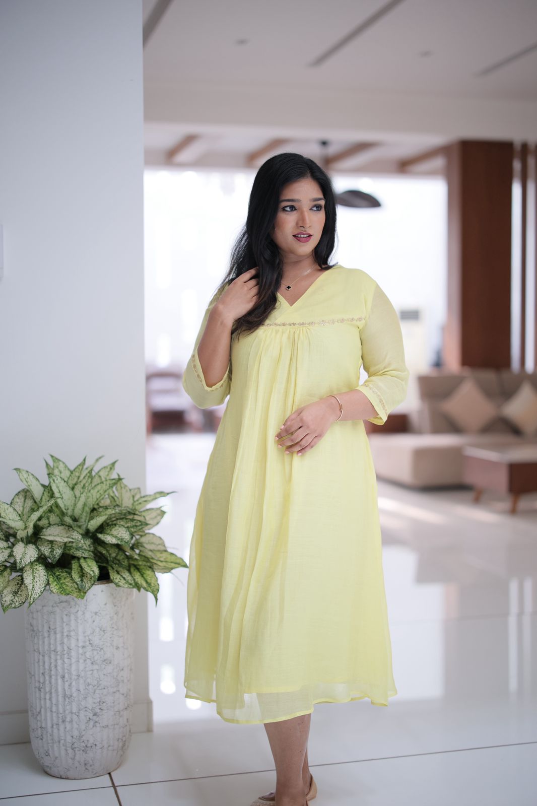 Lime yellow zari dress - a24