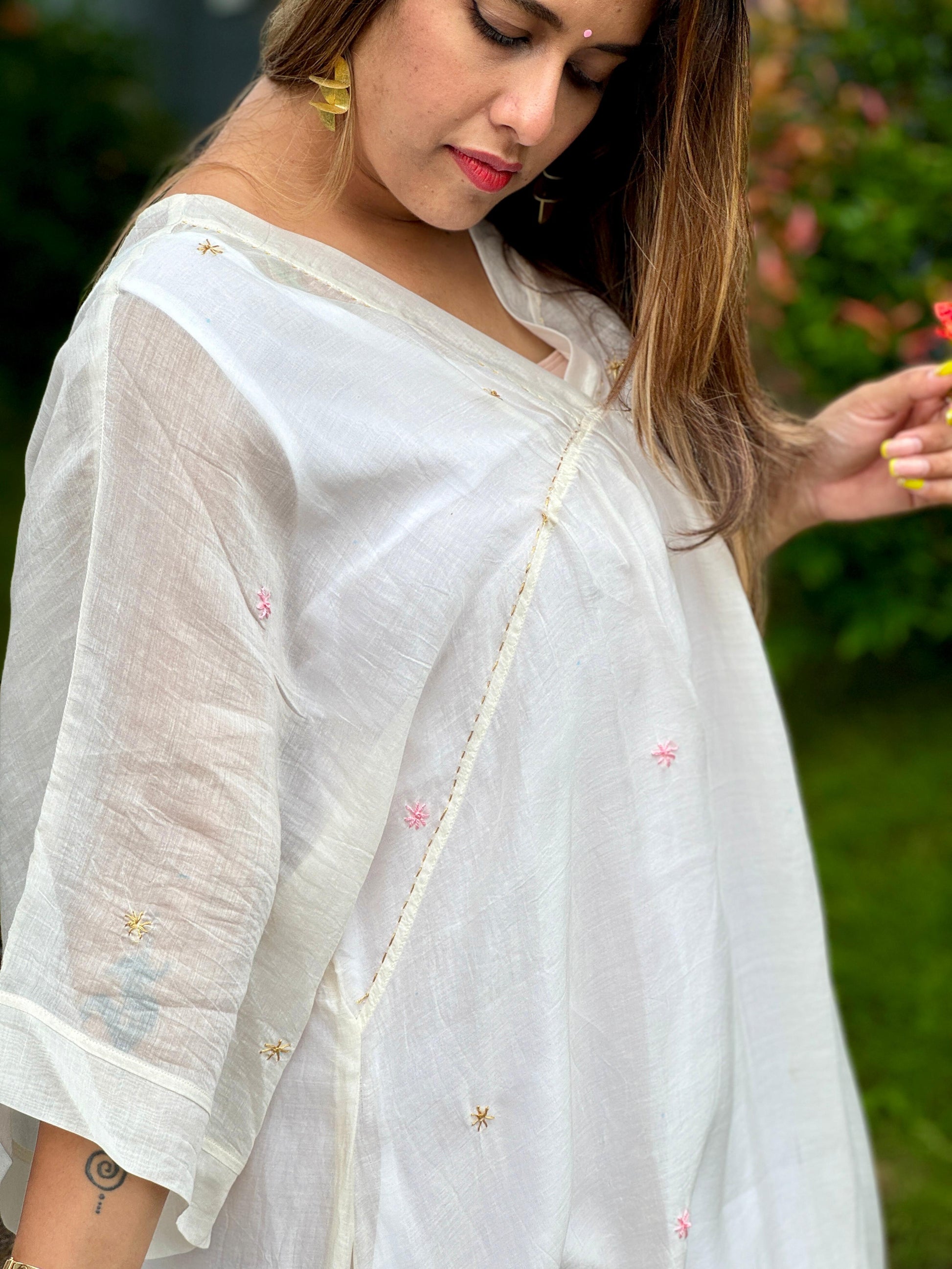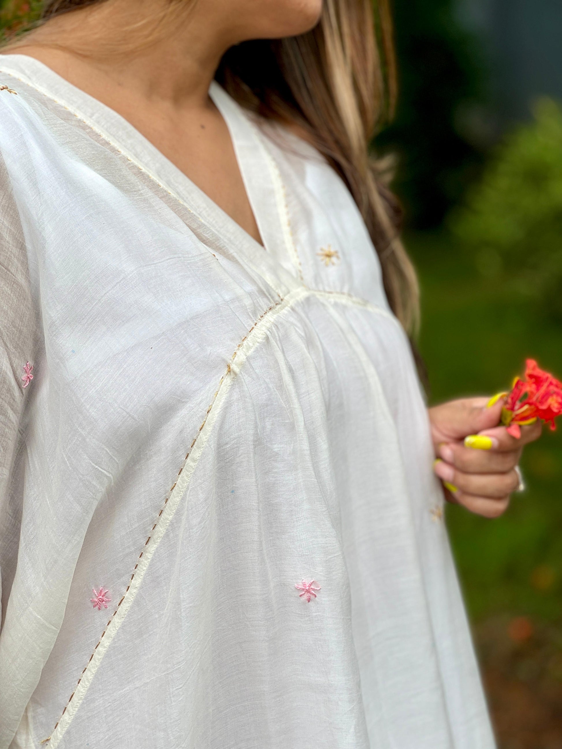 This beautiful and super comfortable off white kaftan  dress  add an effortless style statement. Intricate hand embroidery adds elegant vibe . It’s a must have in every women’s wardrobe. Try it to fall in love with in stylish yet comfortable dress .