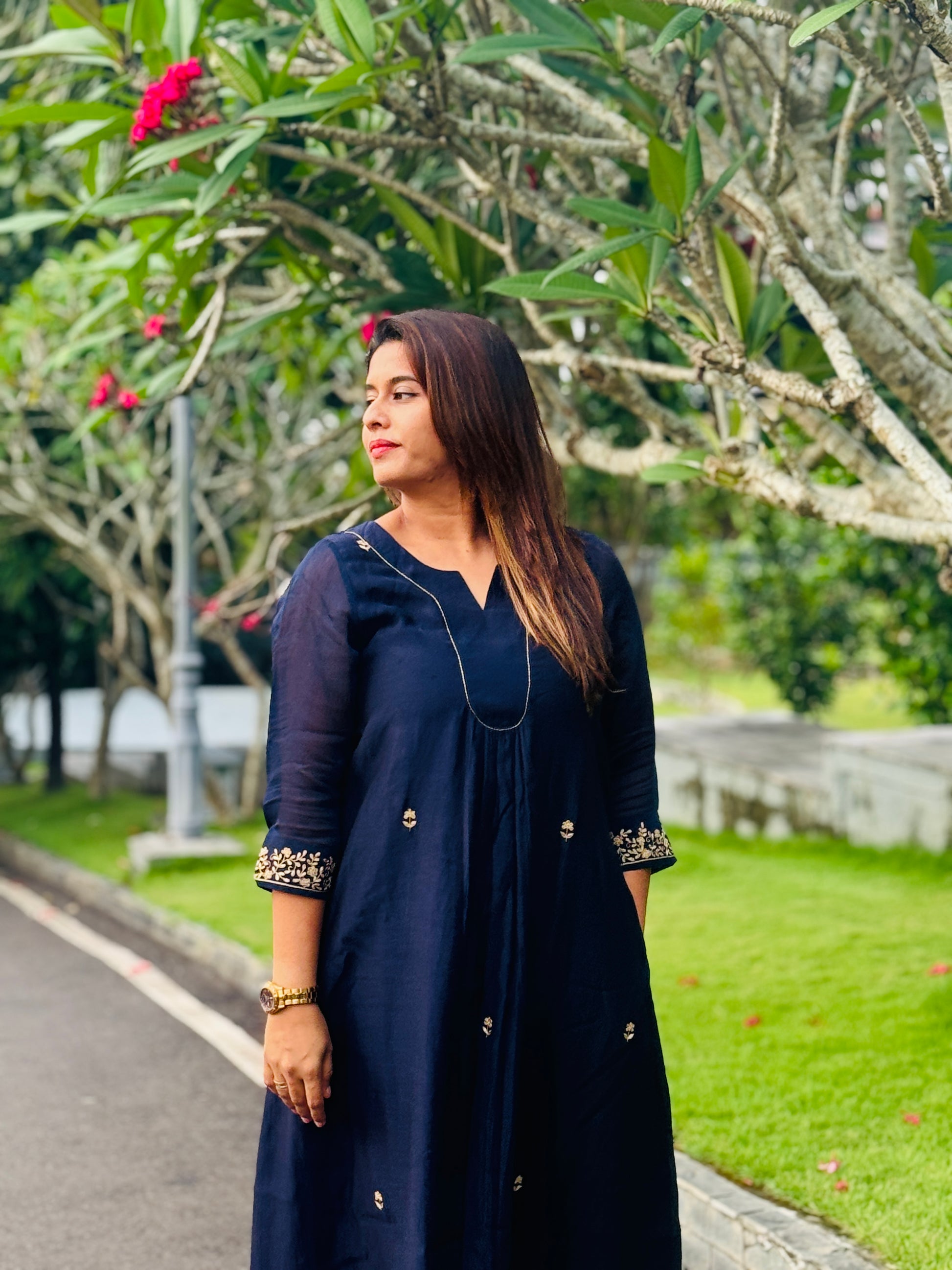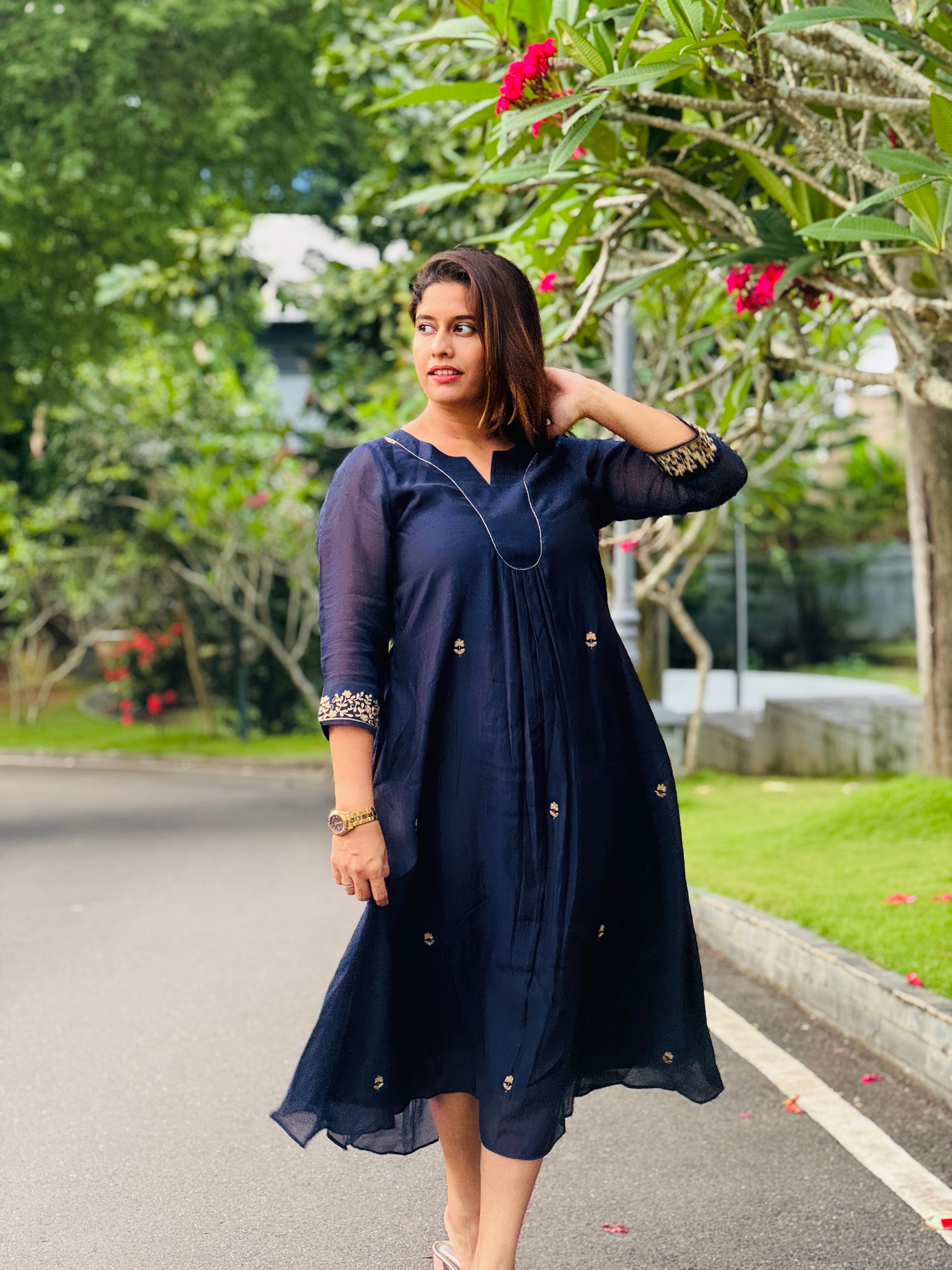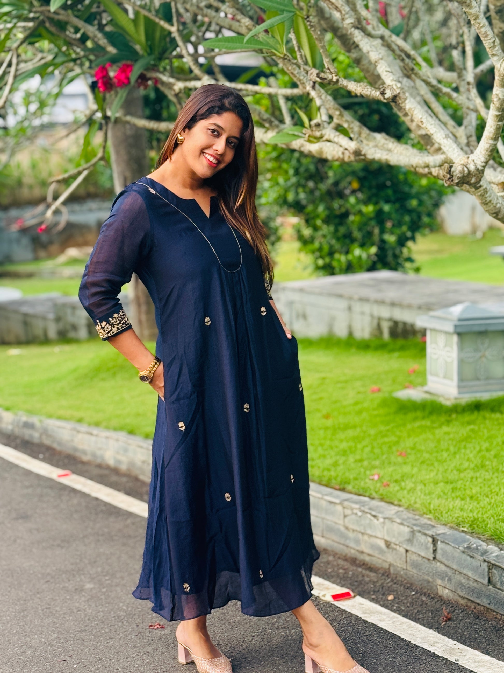 tunic dress has all over hand embroidery detailing and small