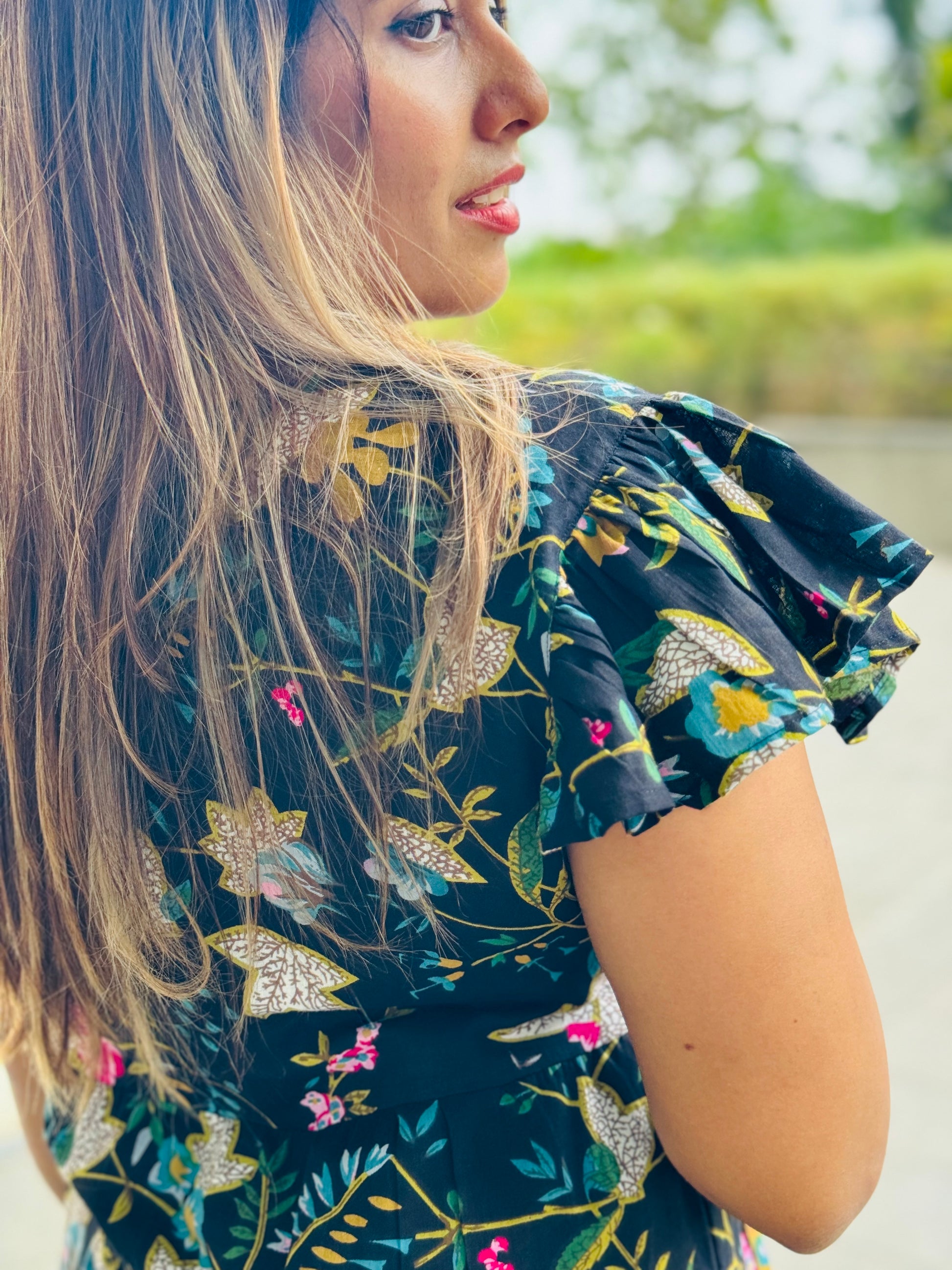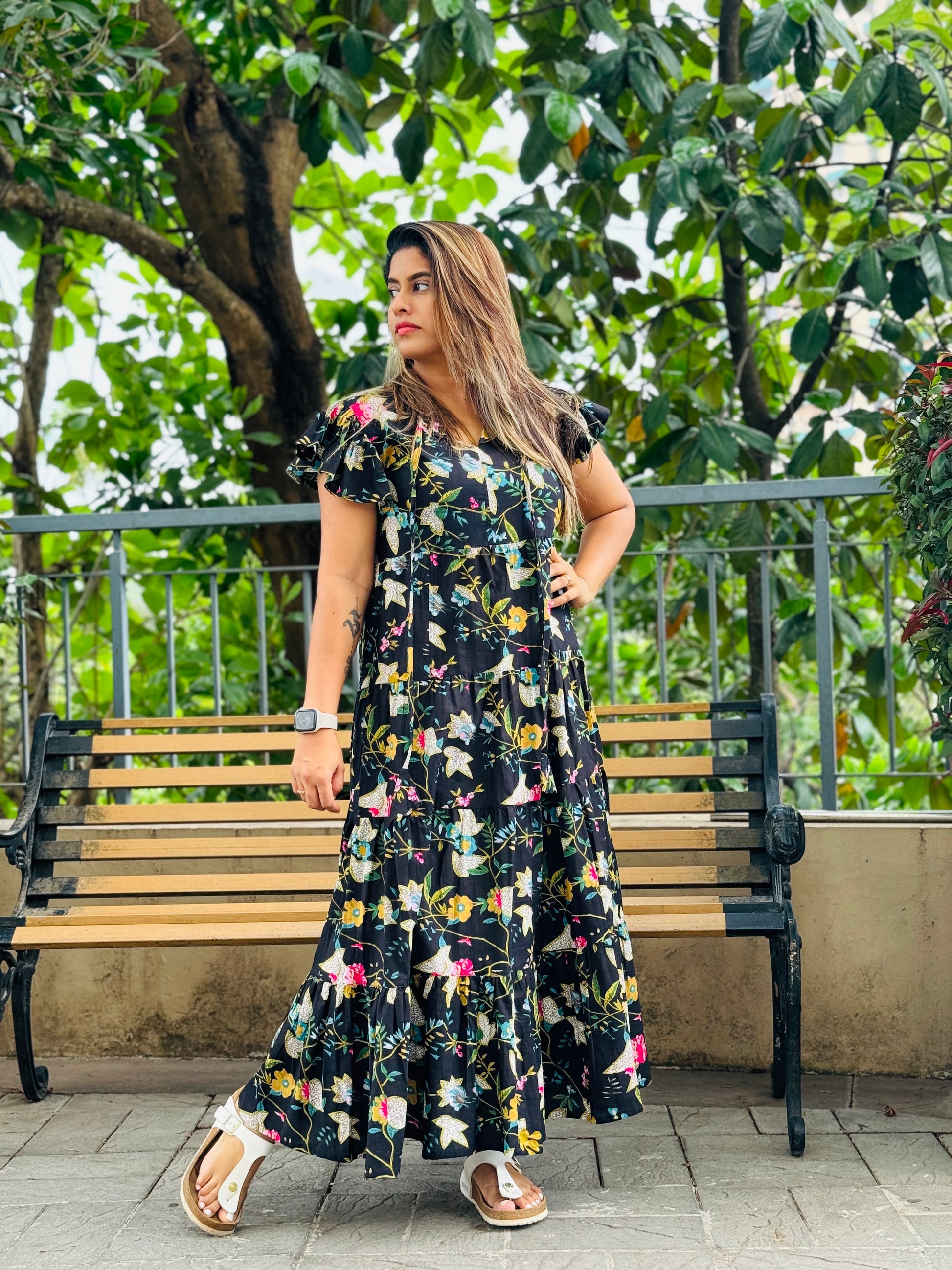 Made with printed cotton fabric , this Dress is a go-to companion for a perfect sunny day out .