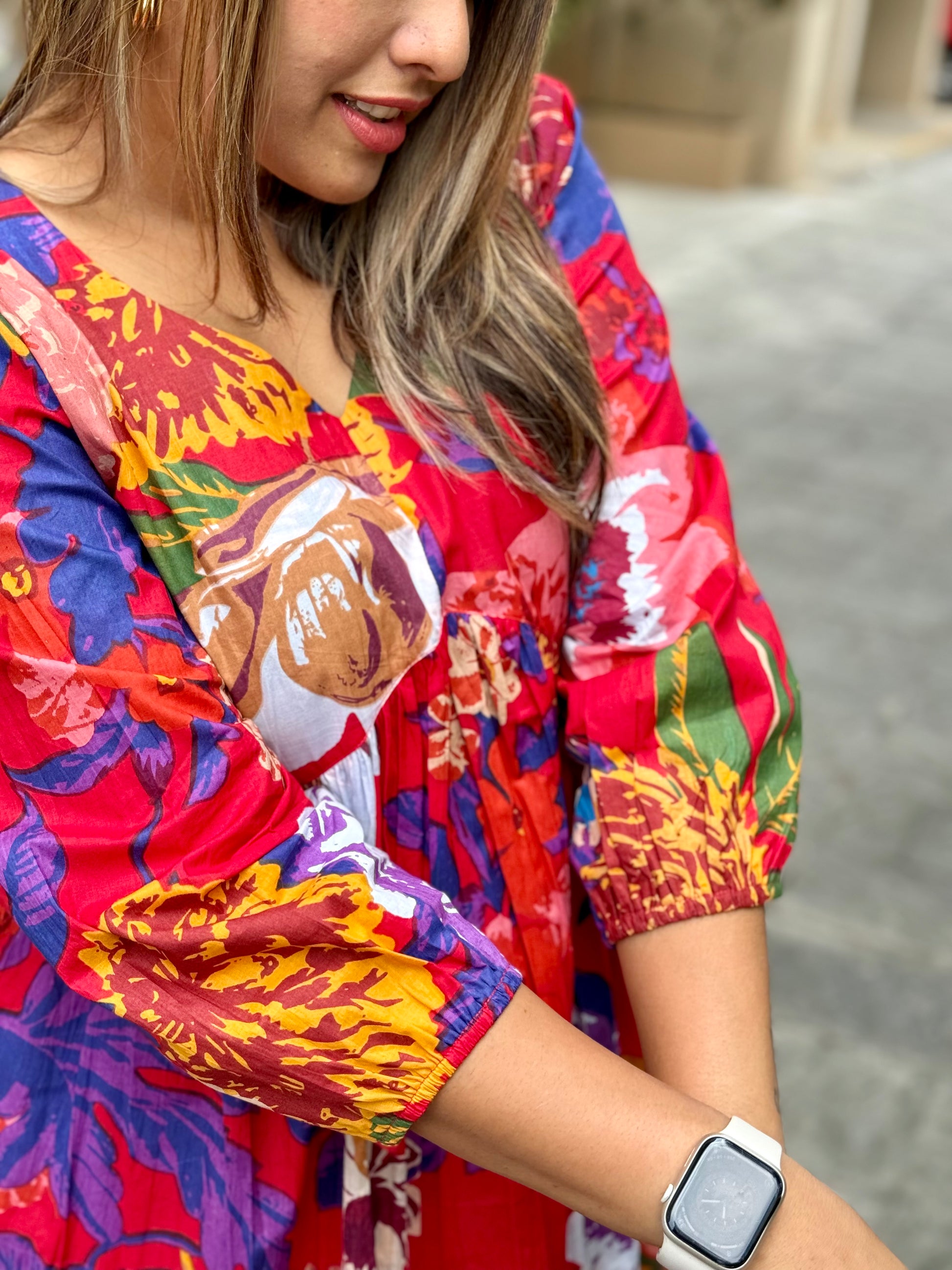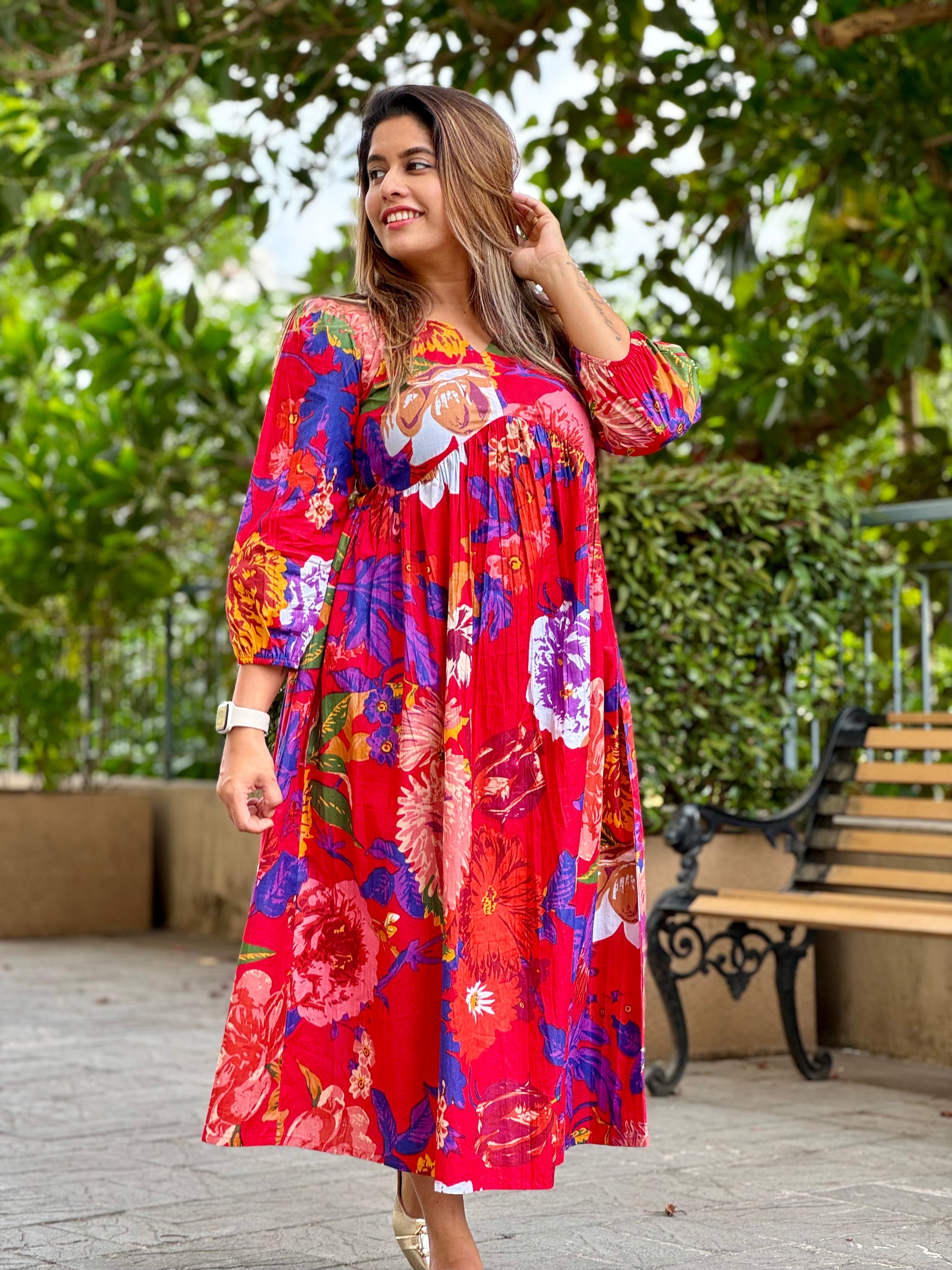 Made with printed cotton fabric  , this Dress is a go-to companion for a perfect sunny day out .