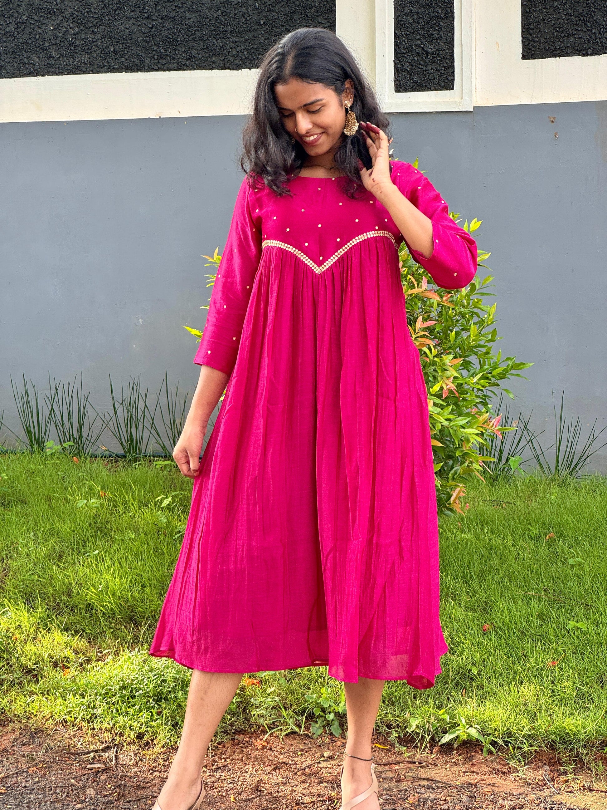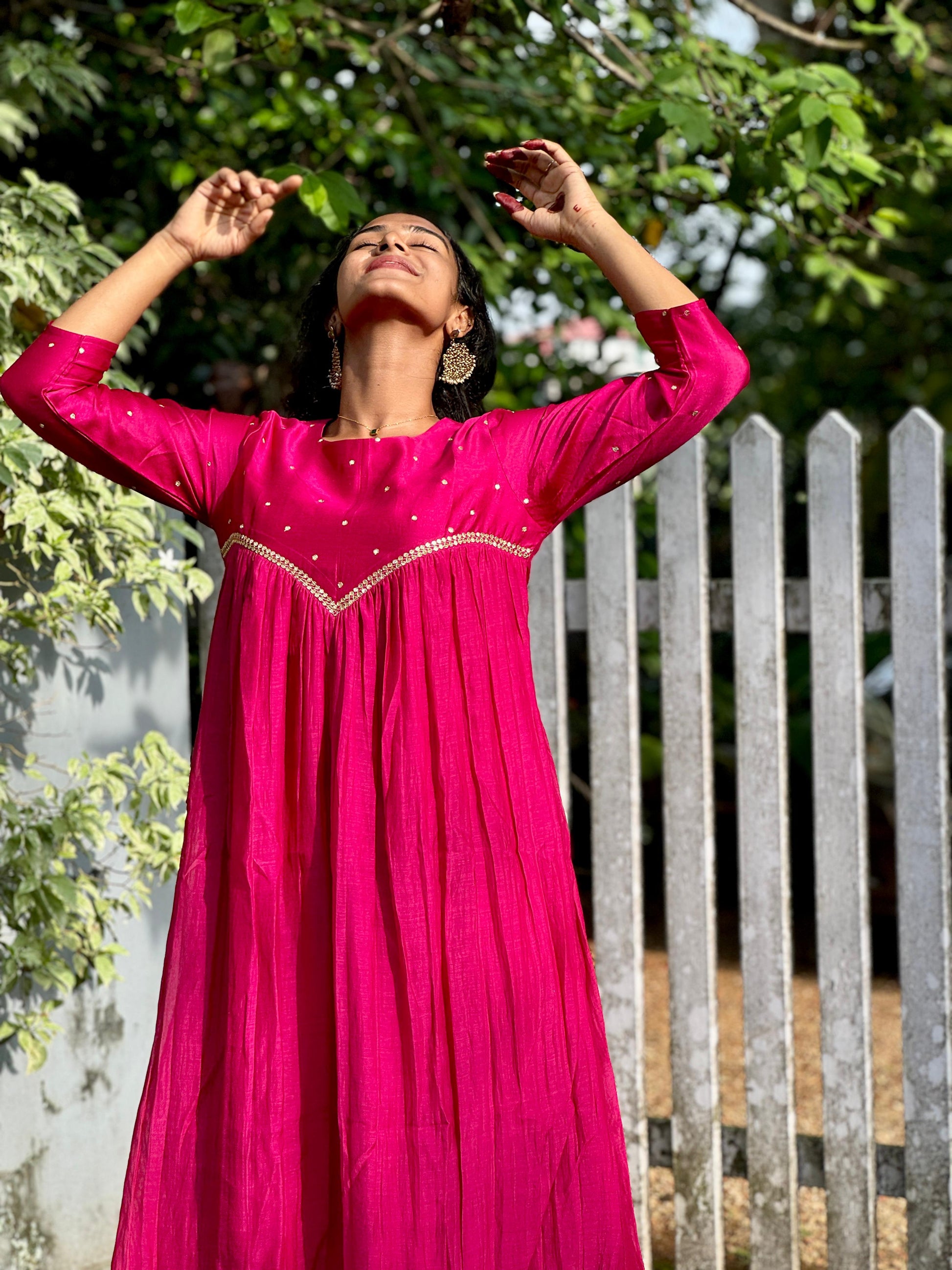 Our semi-party wear Chanderi dress is a masterpiece of craftsmanship,