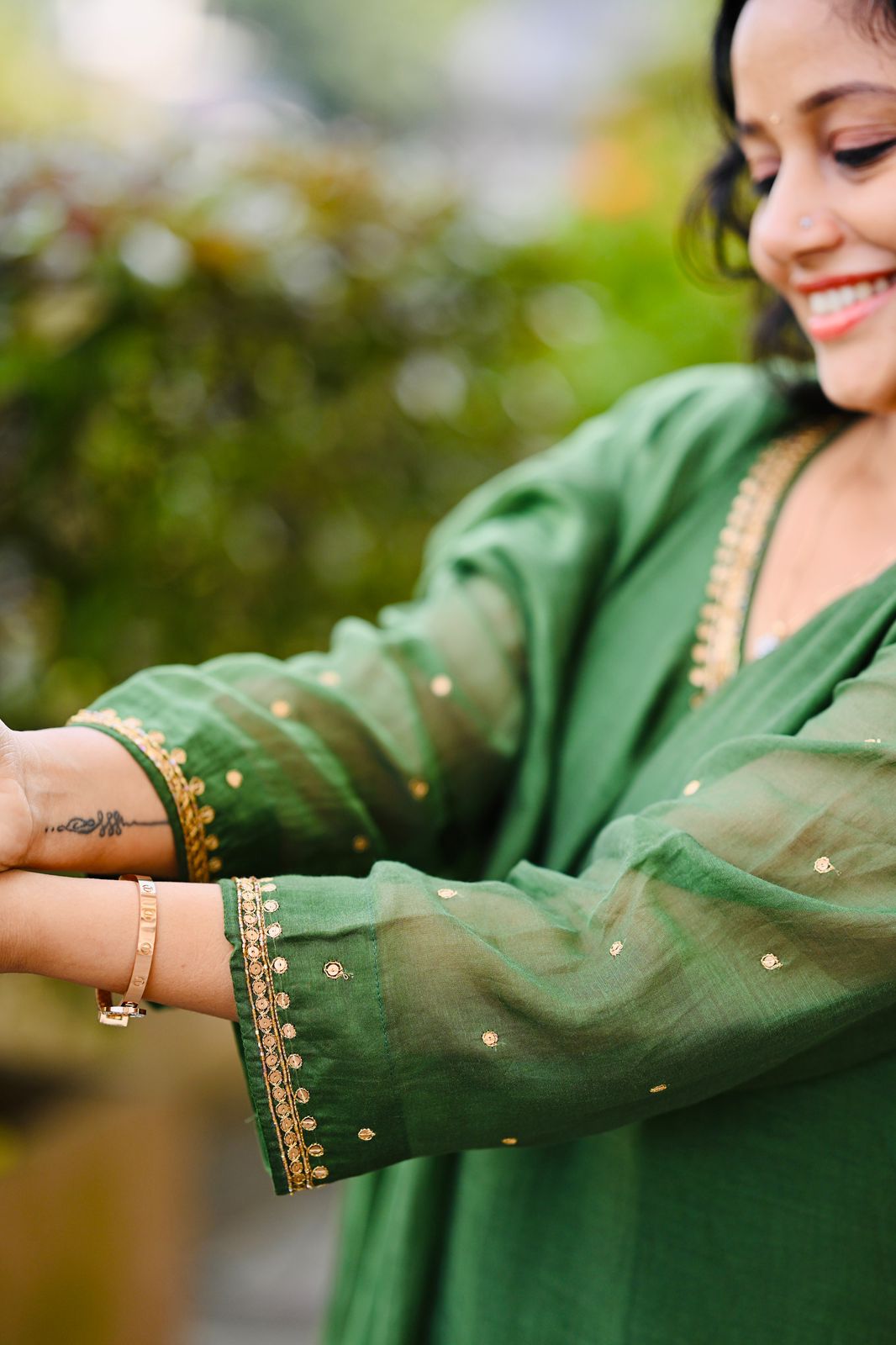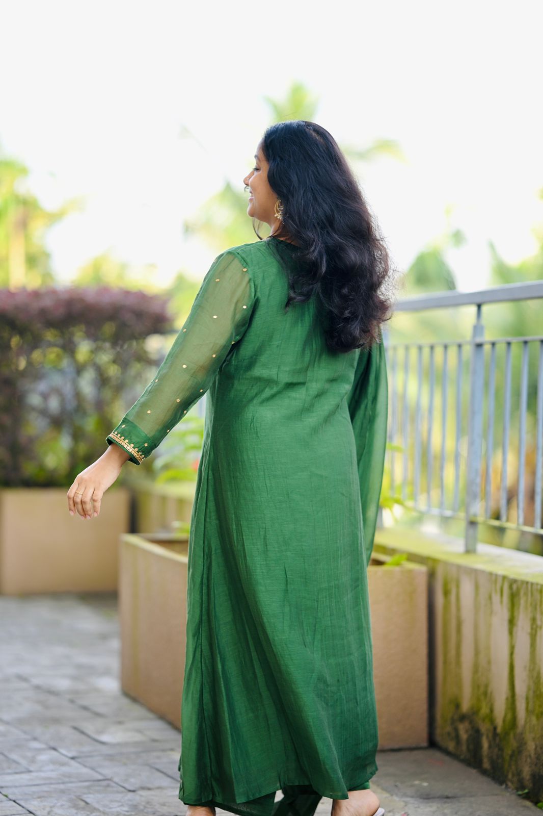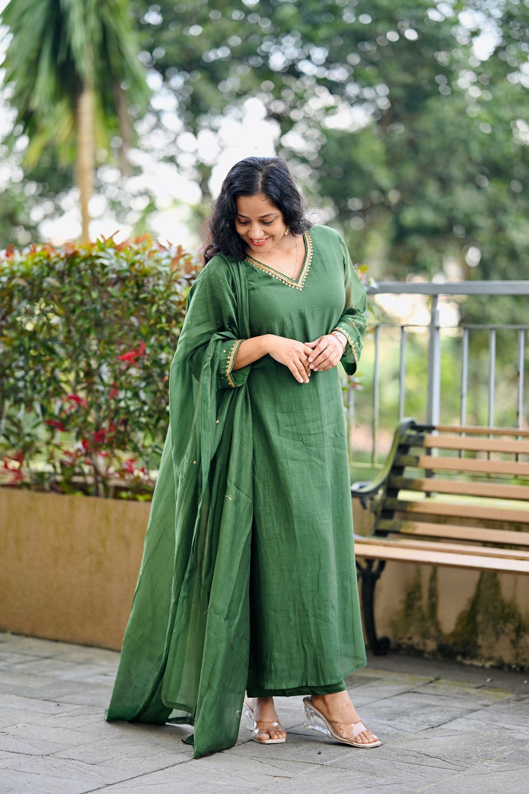 Elegant dark green Silk Kurti and pant with  mul Chanderi silk dupatta *