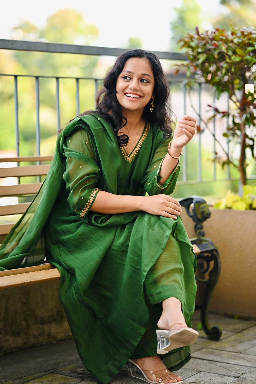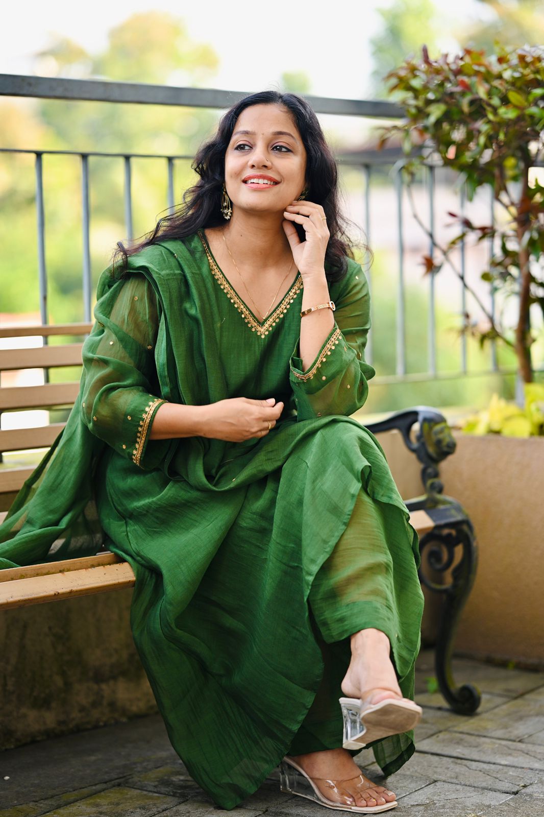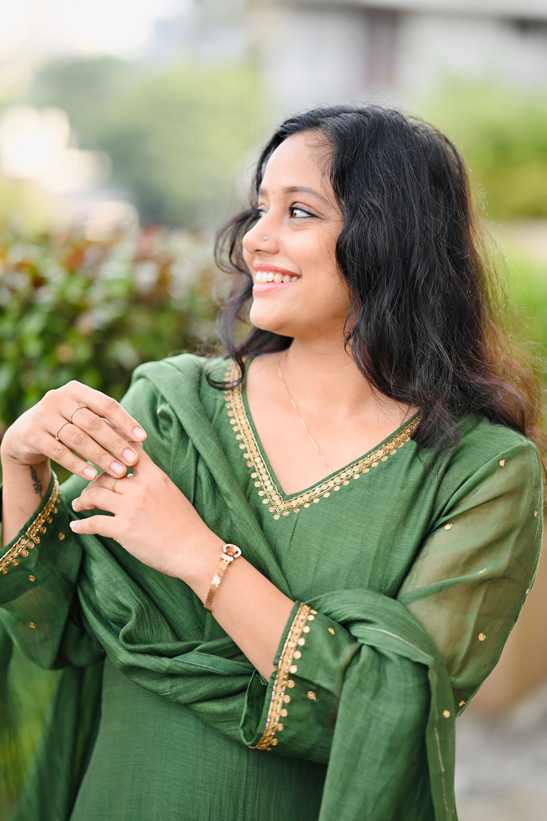 Elegant dark green Silk Kurti and pant with  mul Chanderi silk dupatta *