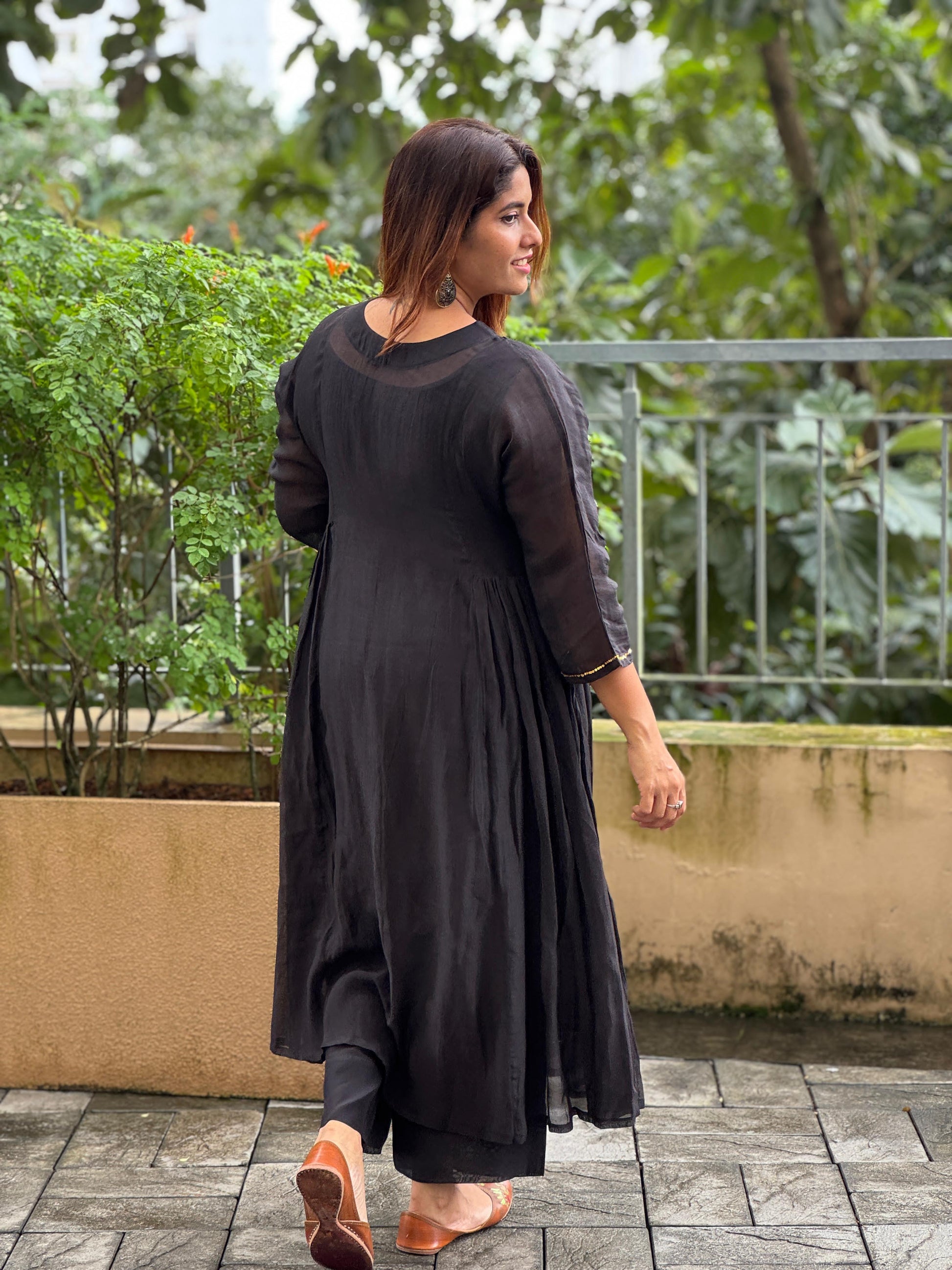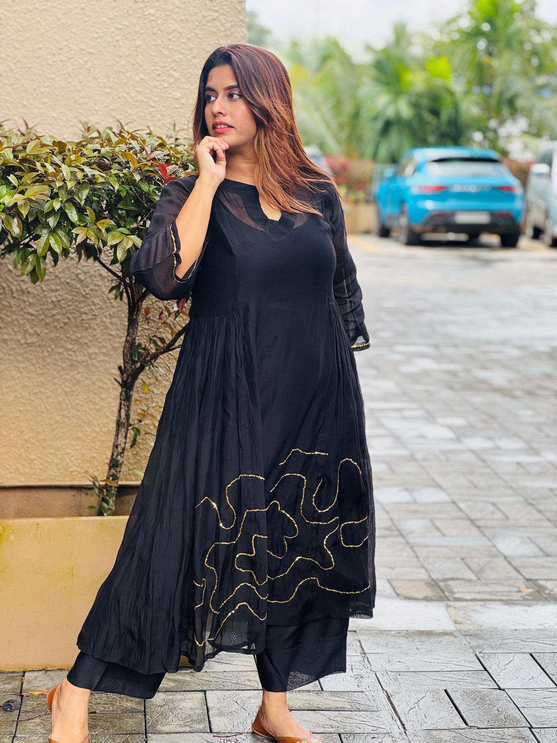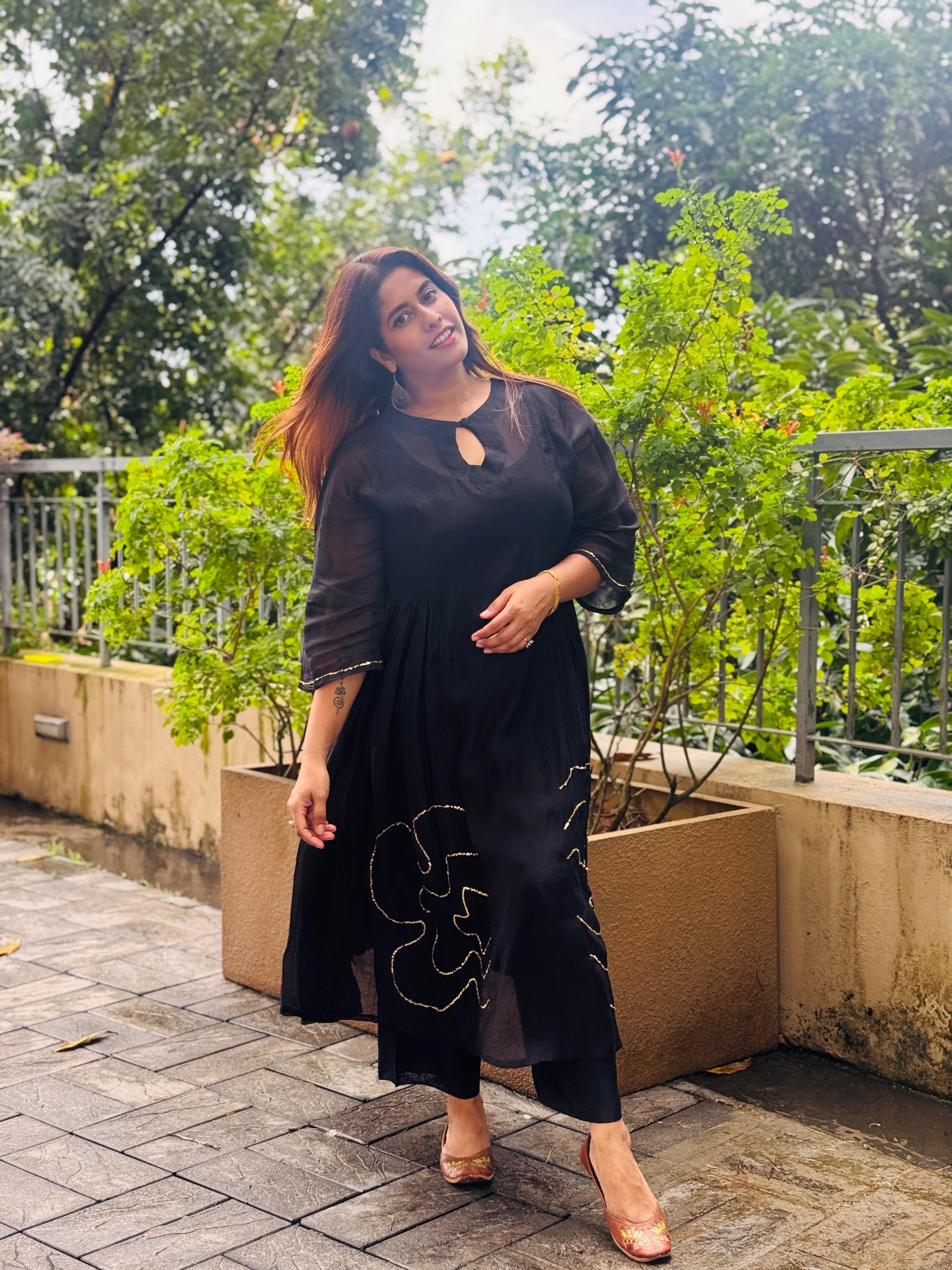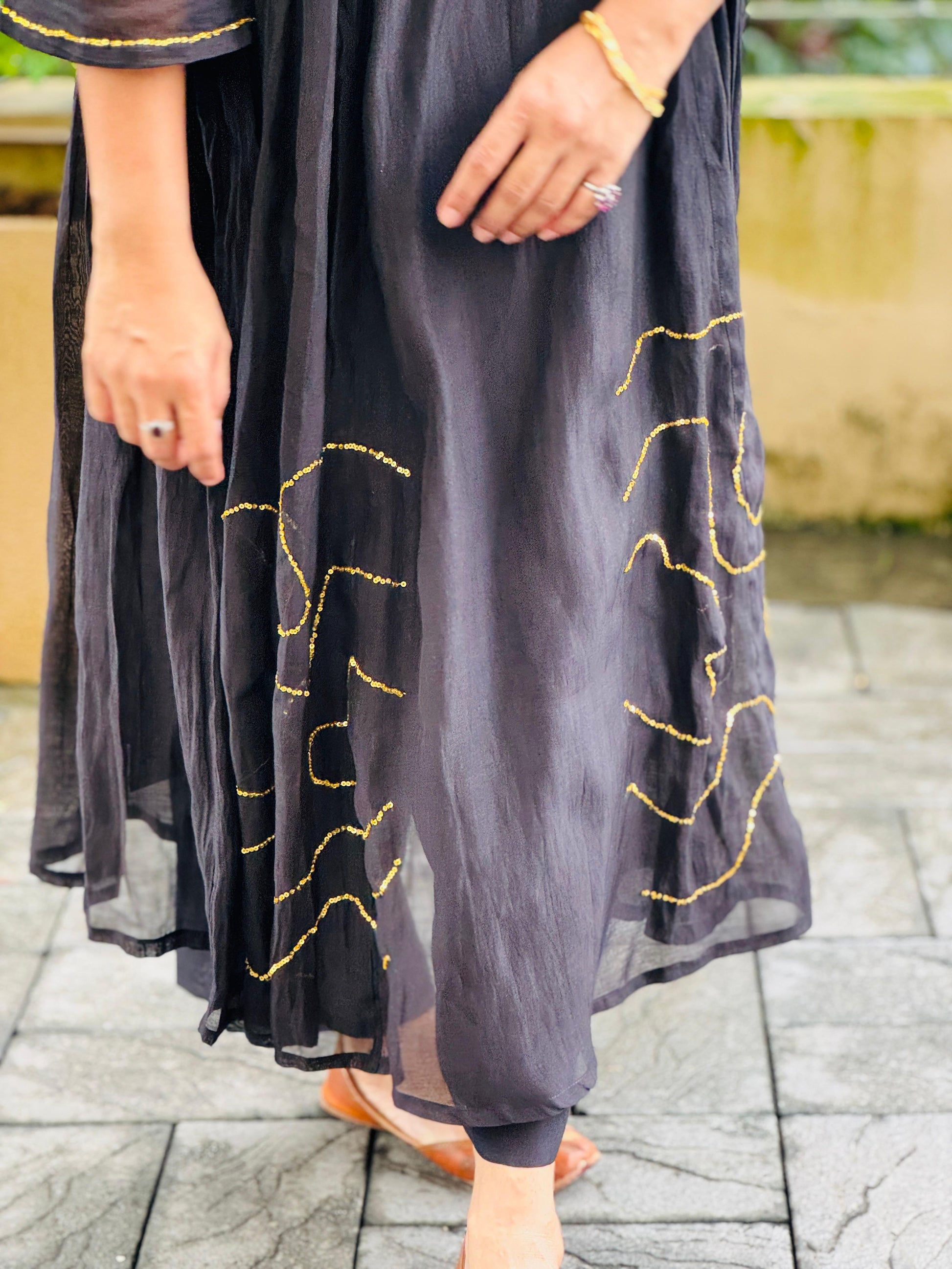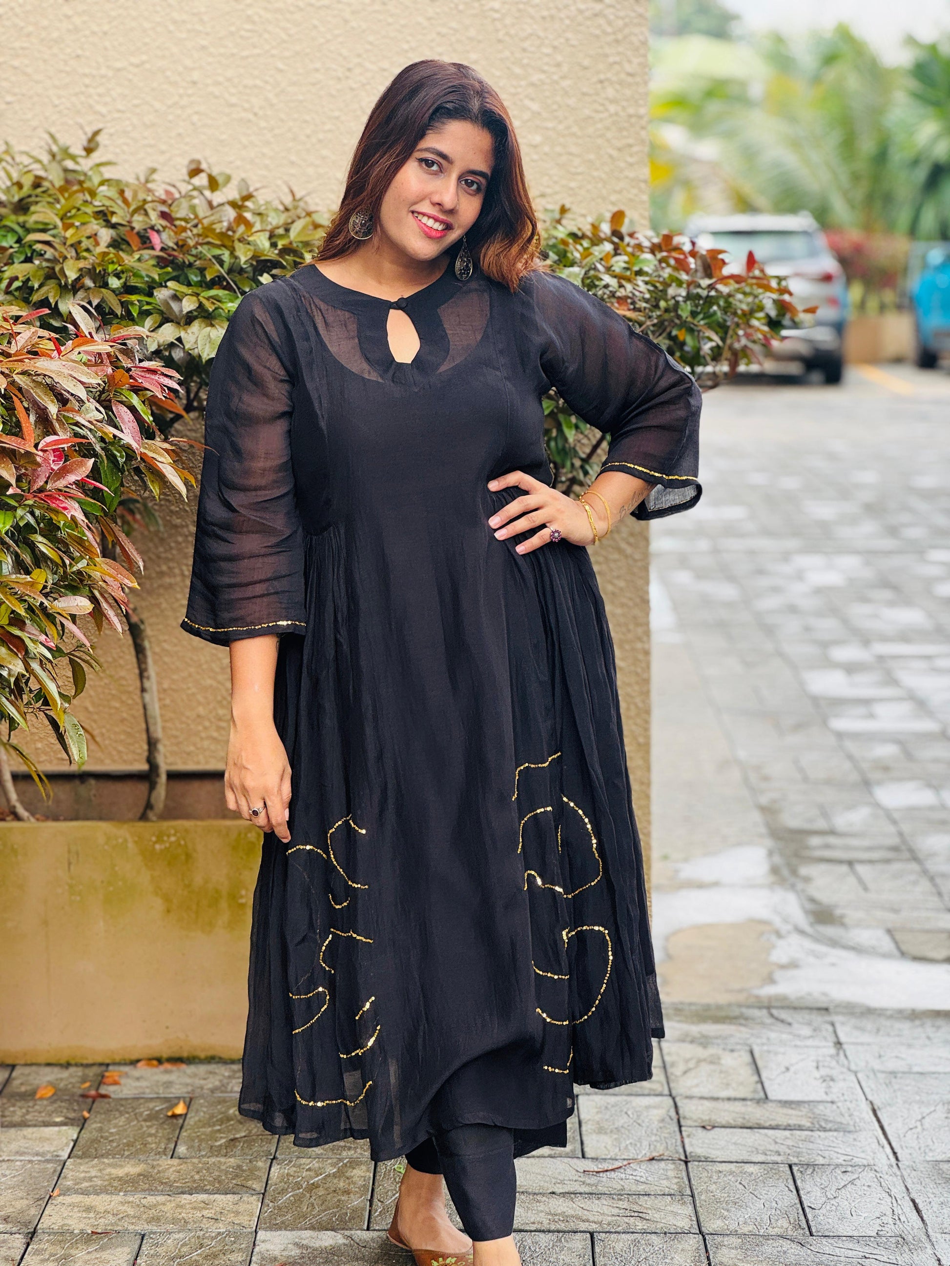 Exquisite craftsmanship meets stunning beauty in this breathtaking black chanderi silk dress !